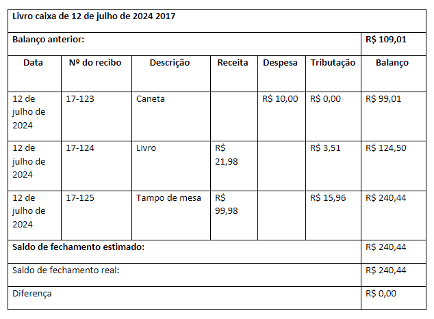 Exemplo de livro caixa