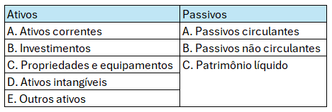 Essa é a estrutura simplificada de um balanço patrimonial: