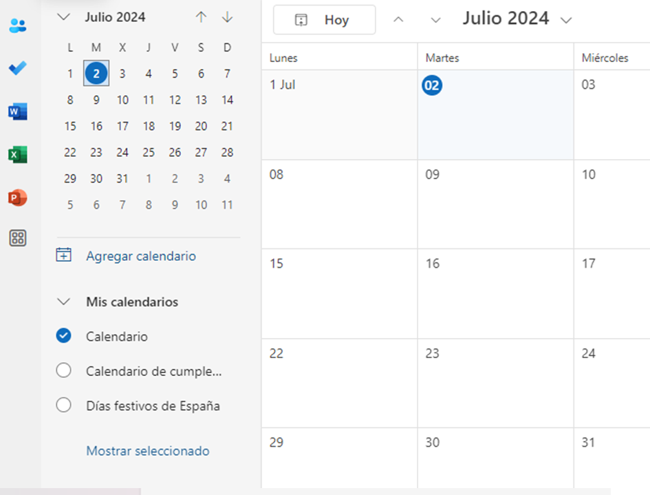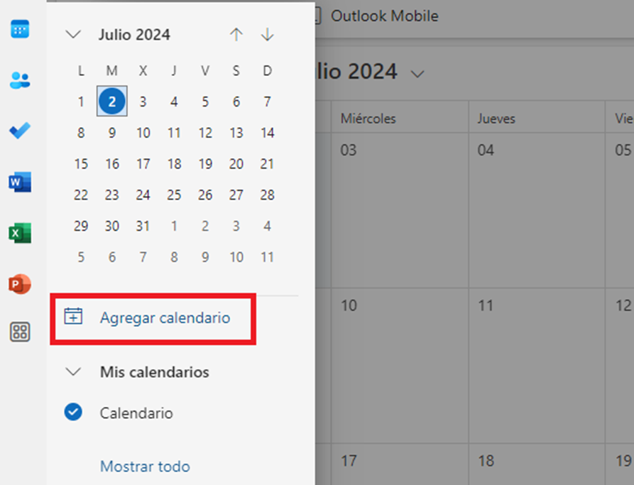 Claro, também podes importar o calendário do Google para a aplicação web do Outlook (OWA). Primeiro, acede à página do OWA e inicia sessão como habitualmente. Passa para a vista de calendário clicando no pequeno ícone de calendário no canto inferior esquerdo.