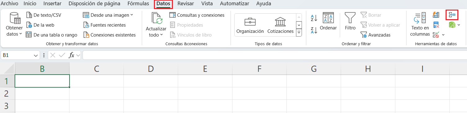 Passo 2. Agora, selecione a célula da nova folha de cálculo na qual pretende consolidar o conteúdo. Neste exemplo, é a célula «A1». Em seguida, vá ao menu «Dados» e selecione a função «Consolidar» na secção «Ferramentas de dados».